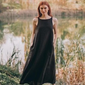 Reversible Black Linen Midi Dress: Sleeveless Summer Cami