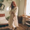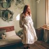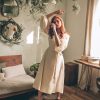 Be the first to review “Cream Linen Wrap Dress Bishop Sleeve Midi”