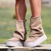 Handmade Leather Platform Boots Beige Color | Soft, Stylish & Comfortable