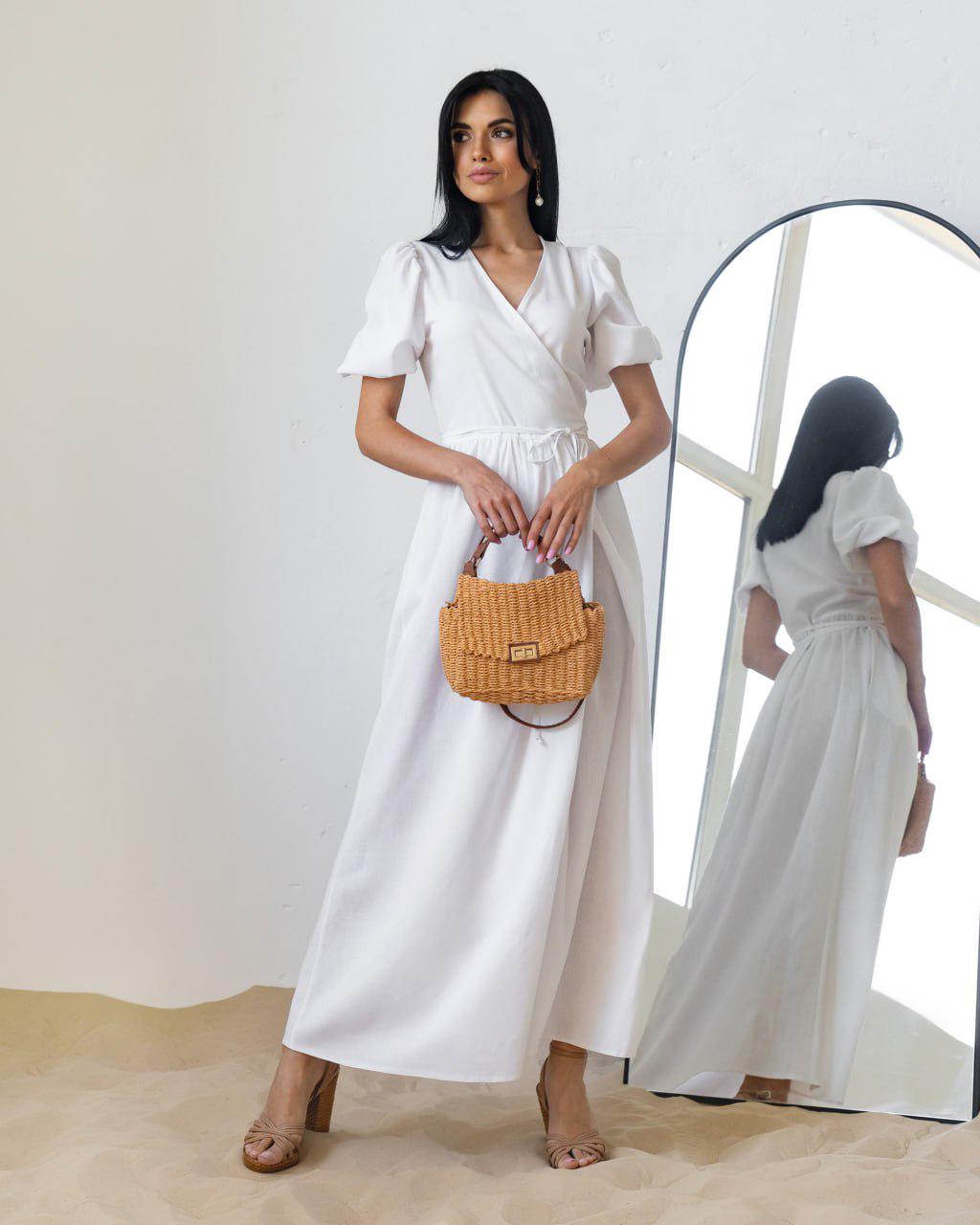 Be the first to review “Linen Wrap Dress Puff Sleeve Vneck Midi Ecofriendly”