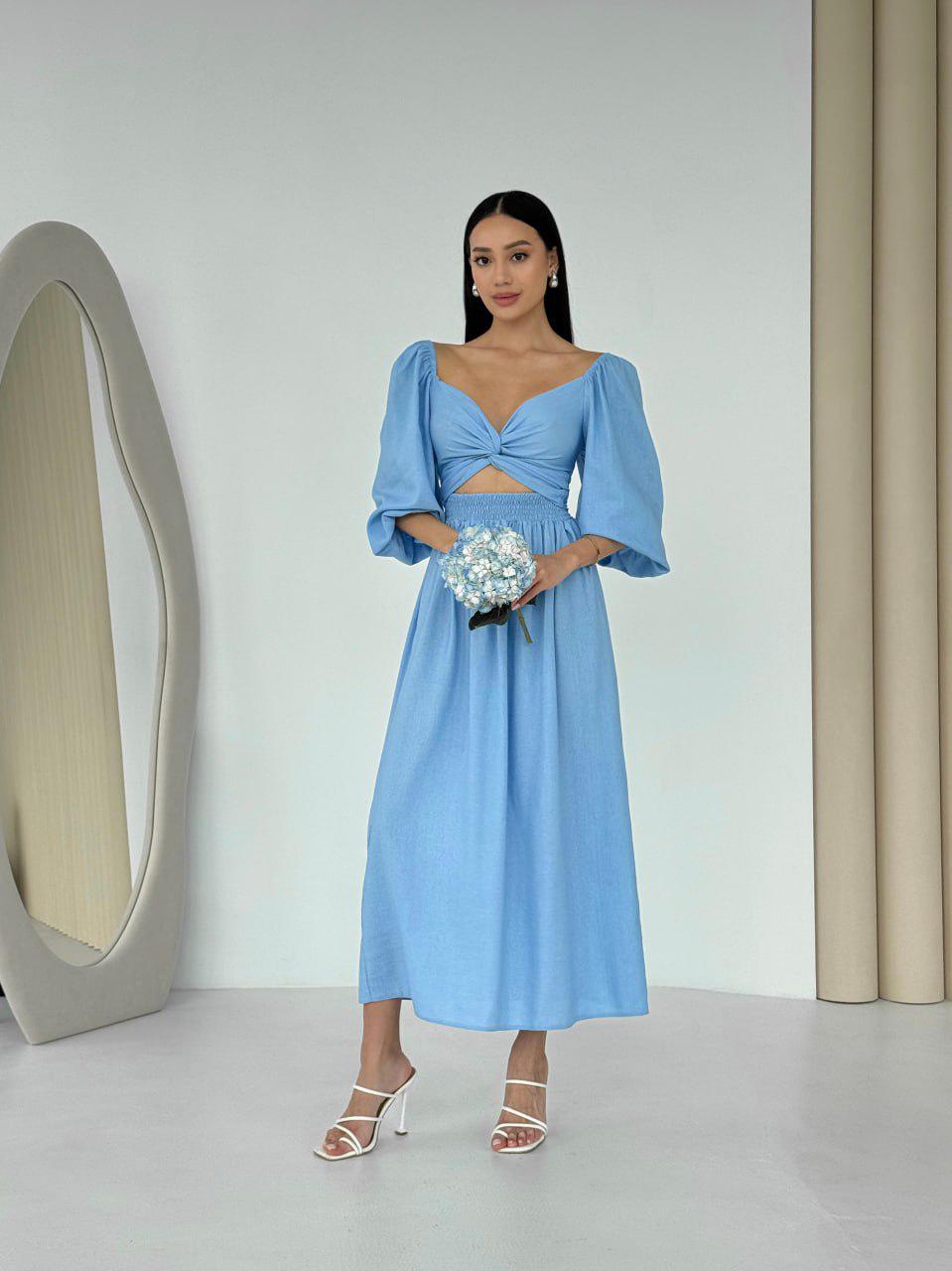A designer linen dress that can be worn in two variations – you need a neckline or an open back – choose according to your mood, and the dress will adjust.