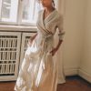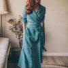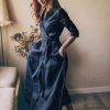 Linen Wrap Midi Dress Shawl Collar Spring Summer