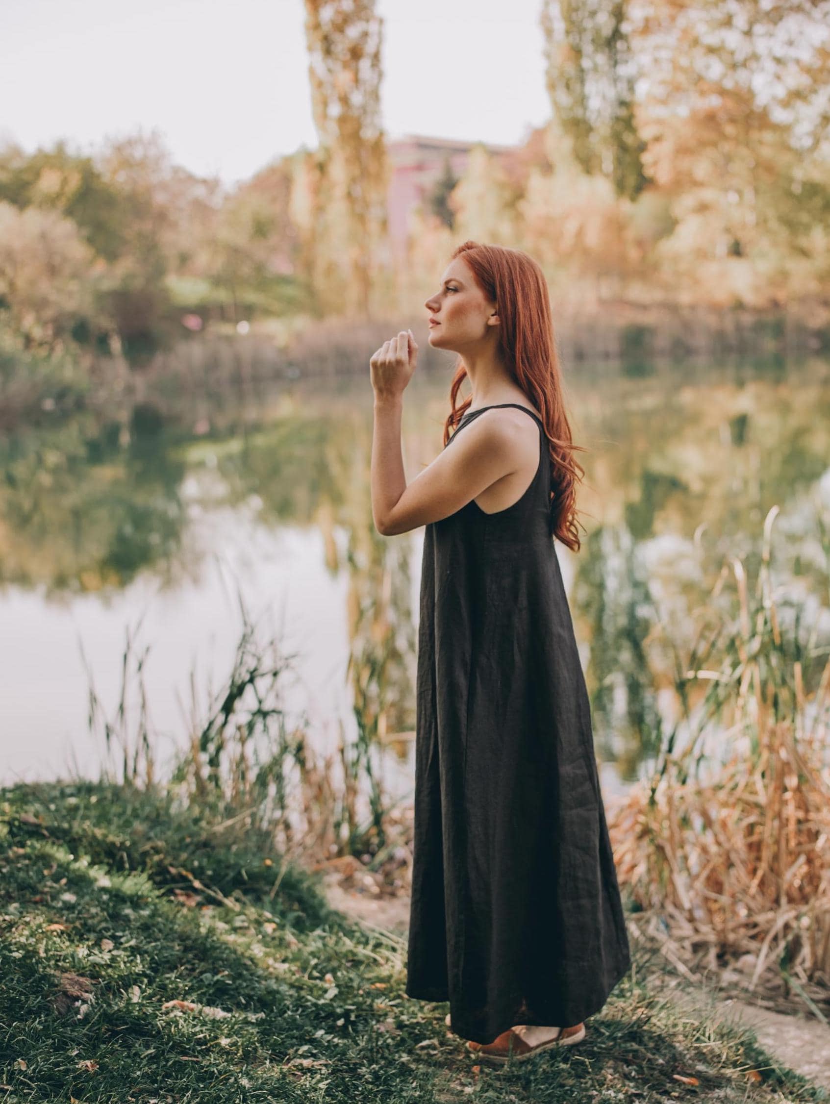 Reversible Black Linen Midi Dress: Sleeveless Summer Cami