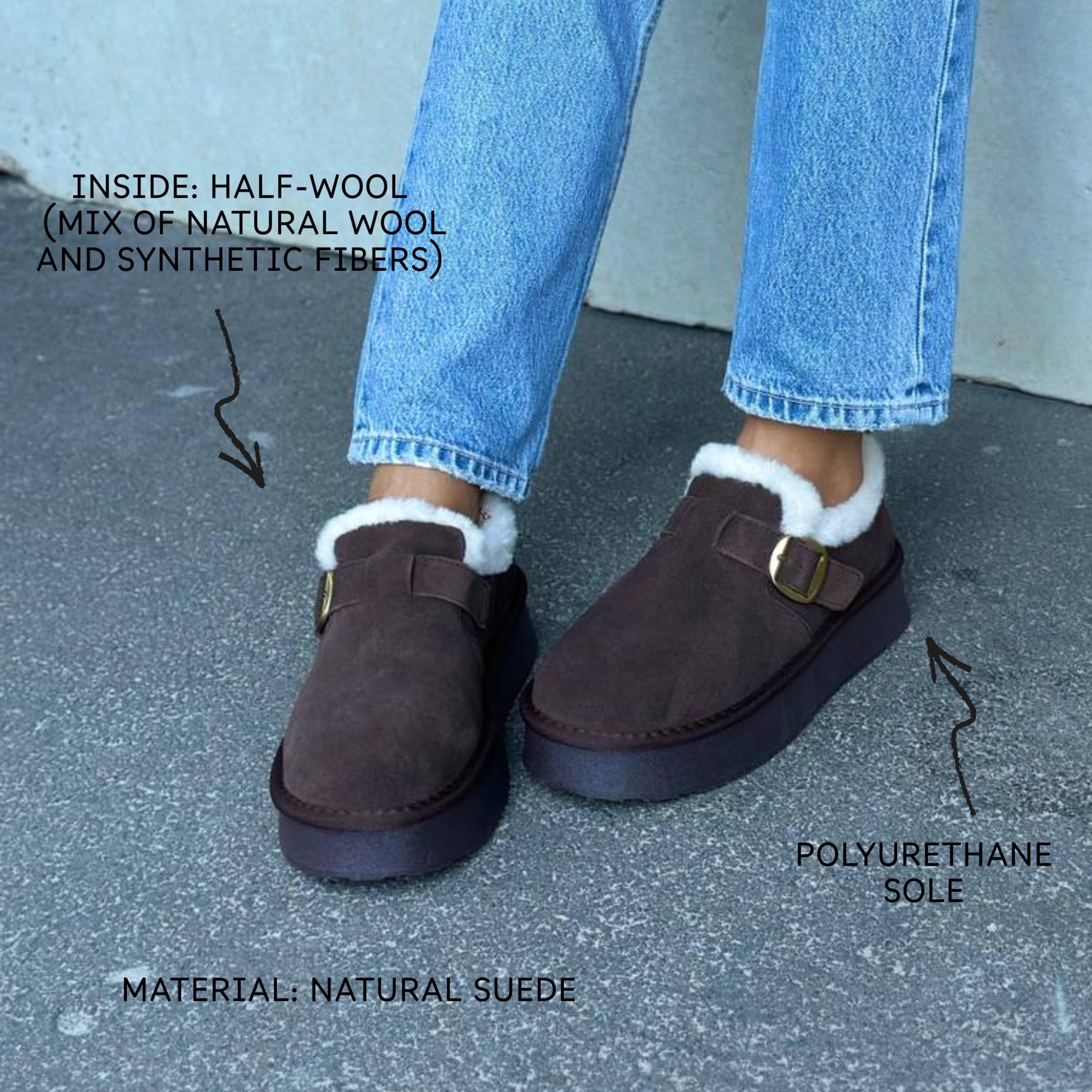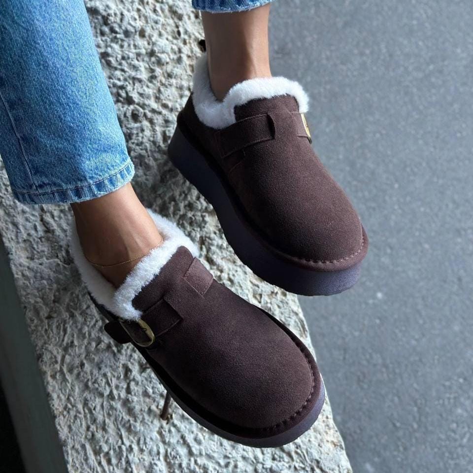 Stay warm and stylish with these suede ankle clogs a cozy blend of comfort, practicality, and winter-ready design. Made from soft suede and lined with plush fur, they keep your feet insulated and comfortable even on the coldest days.