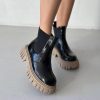Women’S Chelsea Boots Black Chunky Platform Leather Ankle